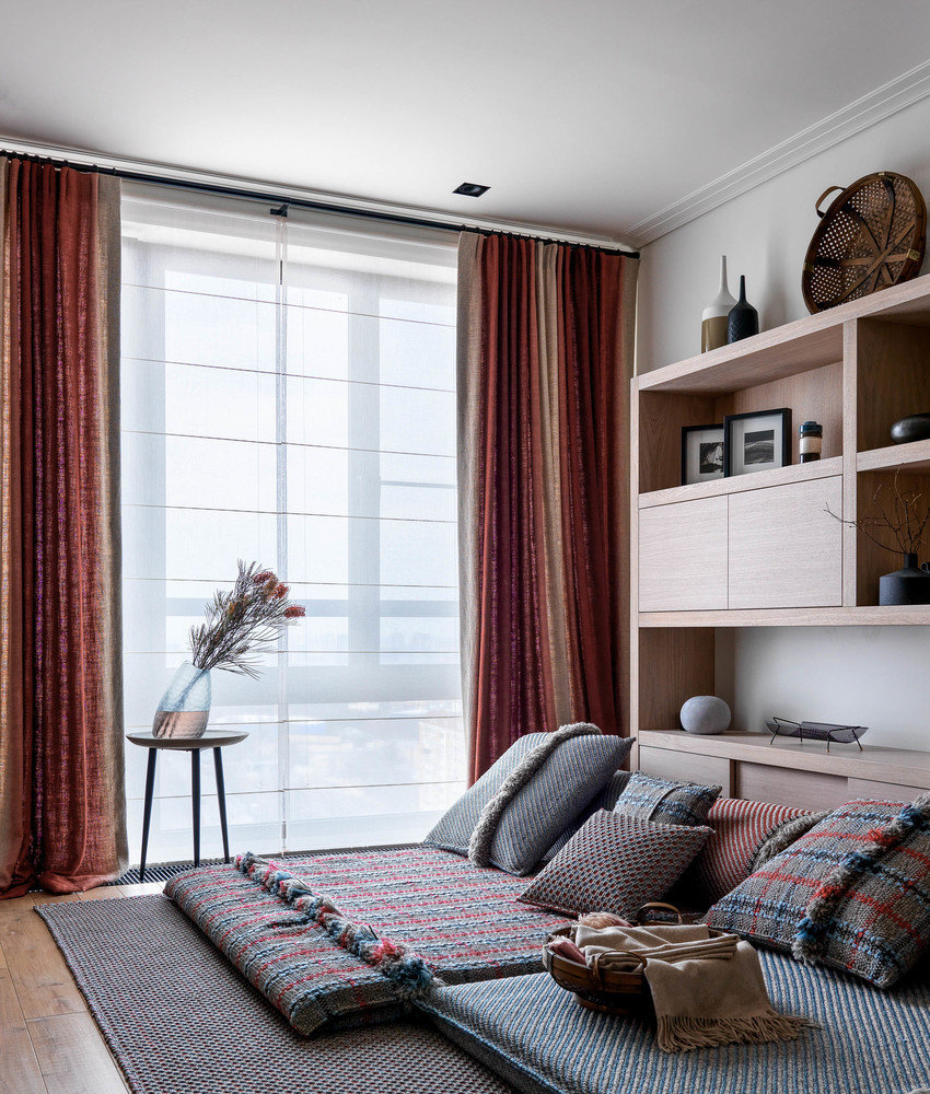 Фотография: Гостиная в стиле Современный, Восточный, Эклектика, Квартира, Проект дня, Москва, Анна Павловская, 4 и больше, Более 90 метров, Эксклюзивные проекты, ПРЕМИЯ INMYROOM – фото на INMYROOM