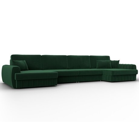 П-образный диван-кровать «Лига 057 Лонг»: роскошь темно-зеленого велюра с двумя полноценными спальными местами
