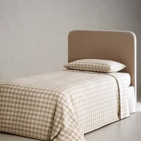 Пододеяльник из окрашенной льняной и хлопчатобумажной нити с рисунком в клетку. Застежка внизу на потайные внутренние пуговицы.