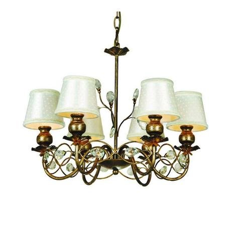 Стиль светильника: современный, Тип: подвесная, Материал светильника: металл, ткань, Диаметр: 540 мм, Высота: 400 мм, Количество ламп: 6 шт., Тип лампы: накаливания, Мощность: 40 Вт, Патрон: Е14, Цвет арматуры: черный с золотом